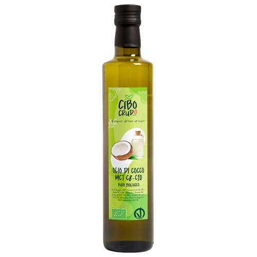 Olio di Cocco Biologico MCT C8 C10 Spremuto a Freddo - 500ml. Olio di Cocco Alimentare Puro e Bio con Acidi Grassi a Catena Media MCT C8 e C10 uso Keto Paleo Corpo o Capelli. Organic Coconut Oil MCT.