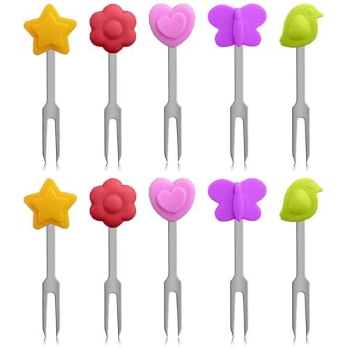 wlsvega Confezione da 10 Forchettine Aperitivo - Forchette per Frutta - Forchette da Frutta Per Insalata - Manico In Silicone,Riutilizzabile,Adatto A Frutta,Dessert,Tè Pomeridiano,Feste di Compleanno