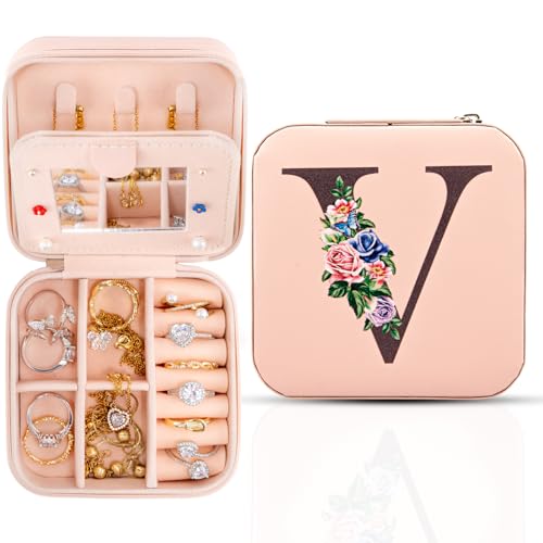 Portagioie da viaggio con specchio, organizer per anelli, collane e orecchini, portagioie personalizzato, regali per donne e ragazze,V
